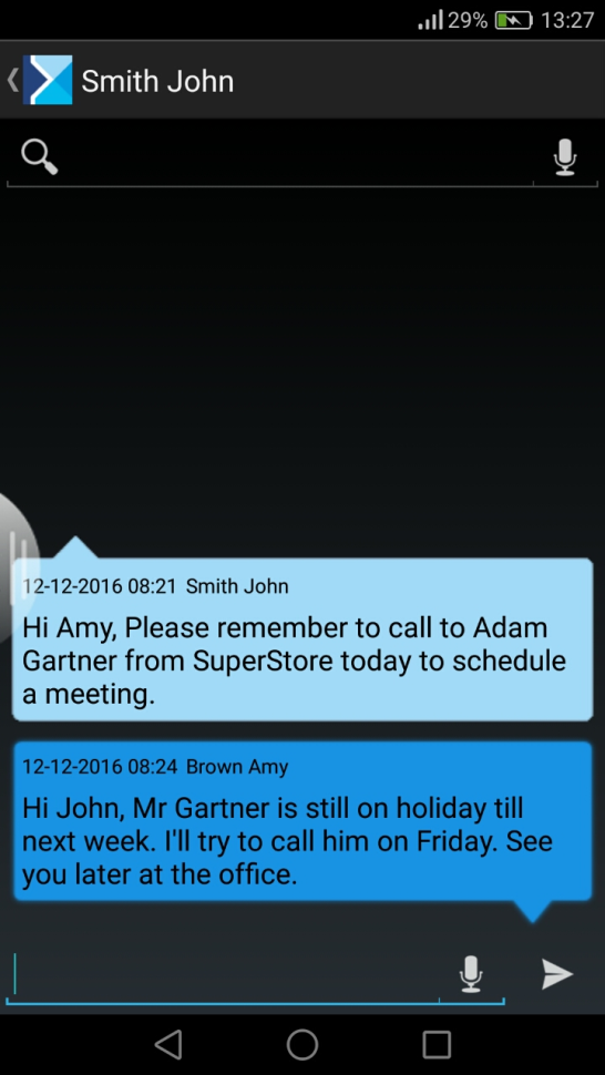 Communicate with one another with the help of the application installed on smartphone or tablet with Android operating system