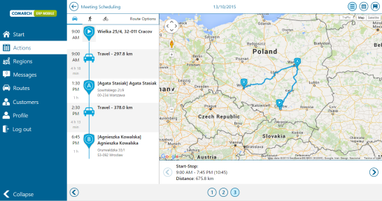 From the point of view of the management staff, it is important to be able to track the routes traveled by sales representatives. Managers who are directly responsible for given employees may conveniently track the routes they travelled, using Comarch Mobile Management.