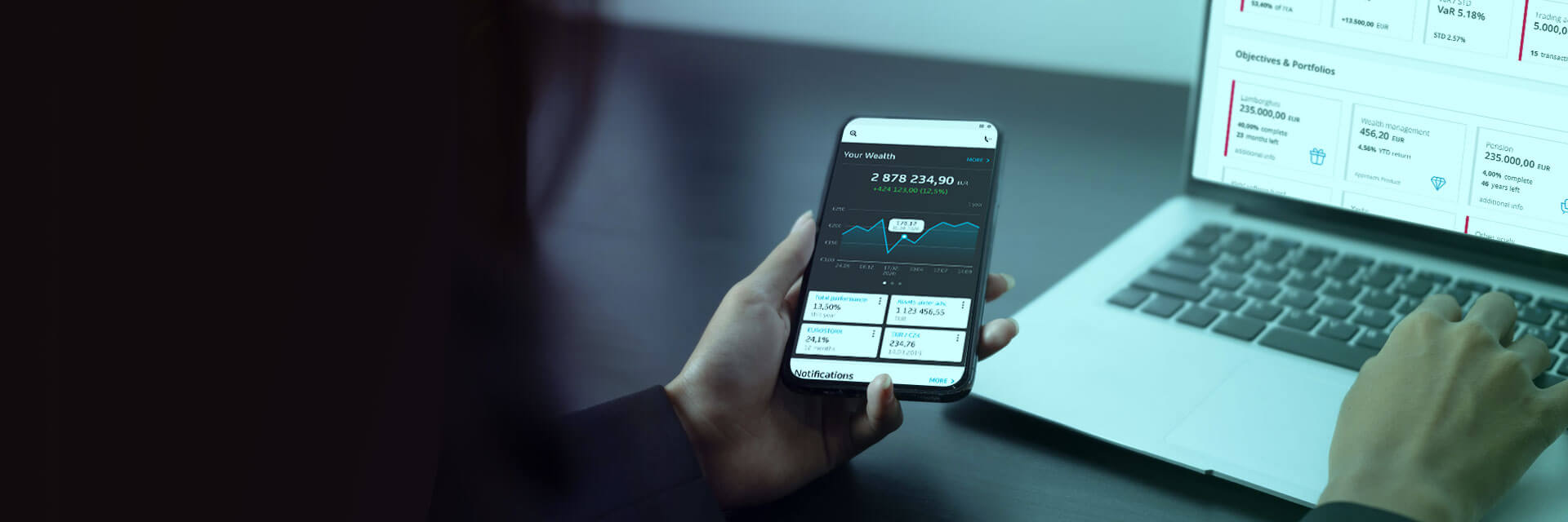 With mobile Comarch Wealth Management Client Front-End you can better guide your customers towards financial discipline. Thanks to tailor-made investment ideas, notifications, or automated rebalancing, end-customers are always up to date with growing their wealth – and know how to grow it themselves.