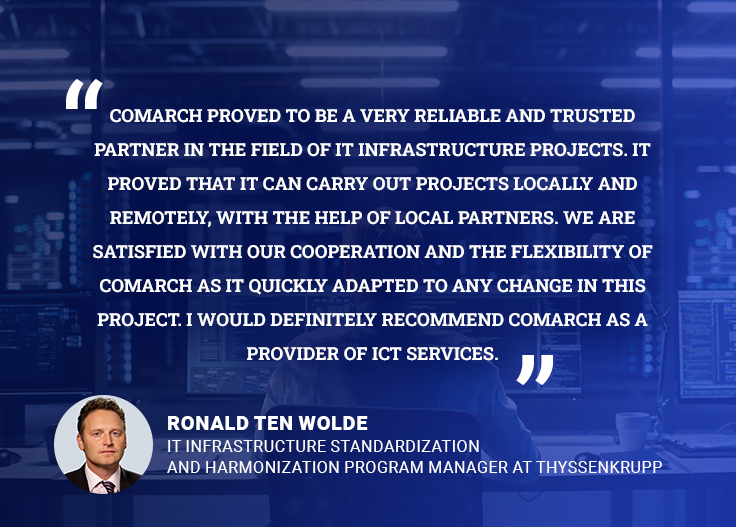 By outsourcing infrastructure modernization to Comarch, ThyssenKrupp was able to reduce complexity, improve internal communication, and create a more unified digital environment—without overstretching internal IT resources.