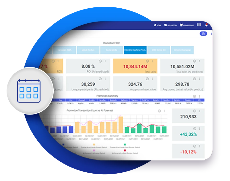 CLM BI goes beyond reporting past performance by predicting the future success of upcoming campaigns. Using historical benchmarks, predictive modeling, and uplift analysis against control groups, the system estimates response rates and likely outcomes before campaigns are even launched. This helps marketers adjust offers, fine-tune targeting, and allocate resources more effectively. By providing a reliable estimation of campaign success, CLM BI minimizes uncertainty and ensures that loyalty initiatives are always optimized for maximum impact. The result is not only better campaign performance but also increased confidence in data-driven decision-making.